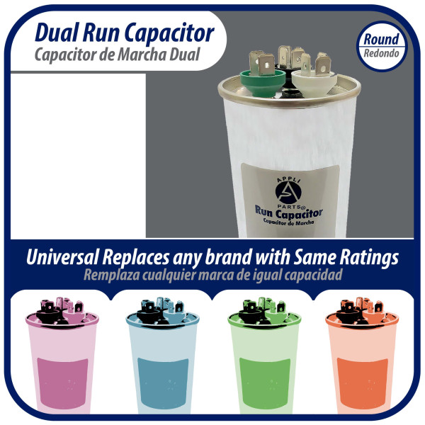 - Universal: Replaces any brand with the same capacitance capacity and voltage. Will work for 370V or 450V. 1/4 in Male Quick-connect
