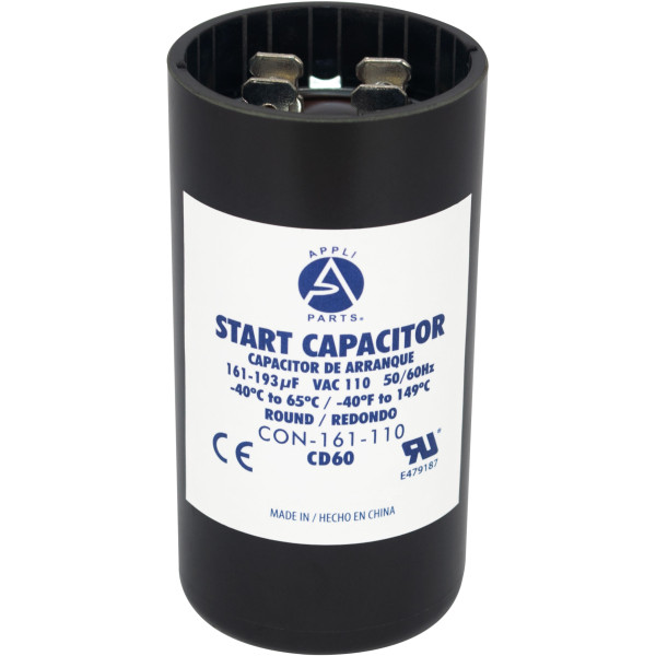 Appli Parts CON-161-110 Motor Start Capacitor 161-193 MFD uF, 110-125 VAC. Universal for Electric Motor Applications, 1.44 in Wide, 3.38 in Height