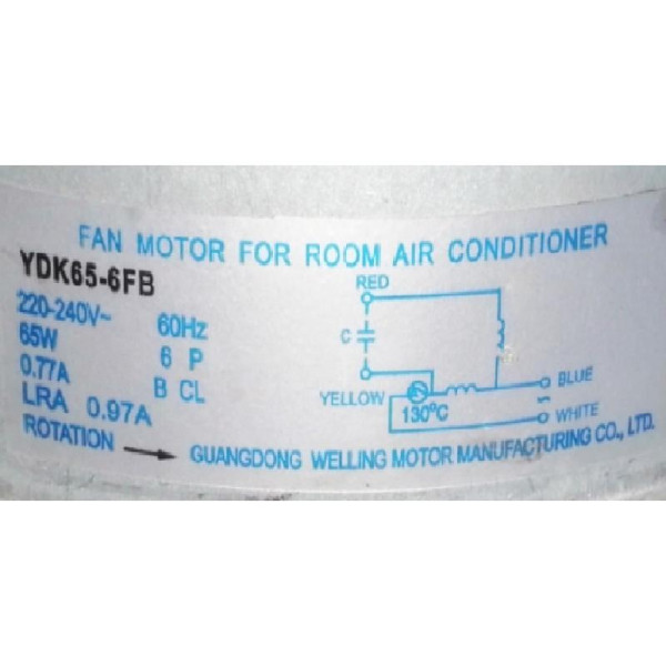 Motor single phase asynchronous YDK65-6FB YKT-65-6-41 RoHS 60w 230v/60hz 202400420701 11002012001019 Fits: ecox MOU-60CRD MOU-60CR midea MOU36CN1MM0W