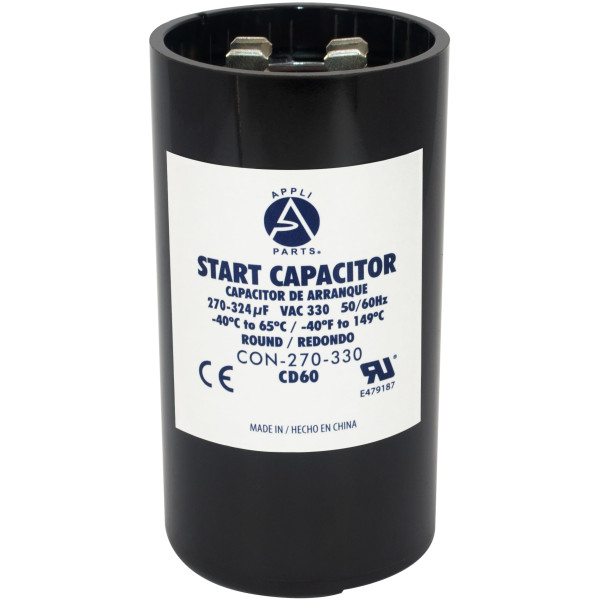 Appli Parts CON-270-330 Capacitor de Arranque 270-324 MFD (microfaradios) uF, 330 VAC. Universal para Motores Electricos, condensador de arranque de 4.6 cm de Diametro, 8.6 cm de Alto