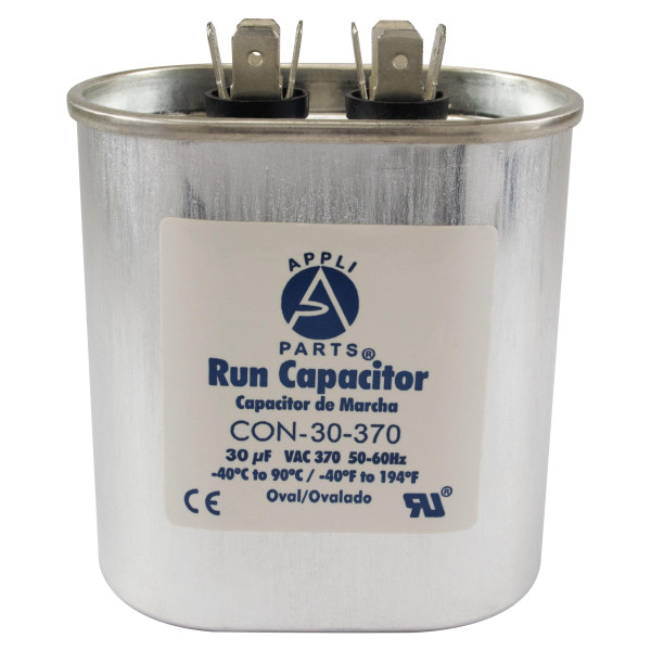 Appli Parts Condensador Capacitor de Marcha 30 Mfd uF (microfaradios) 370VAC CBB65 Universal Aire acondicionado y otras aplicaciones Ovalado UL E476928 5.1cm Ancho 2.5cm Profundidad 7.6cm Alto CON-30-370