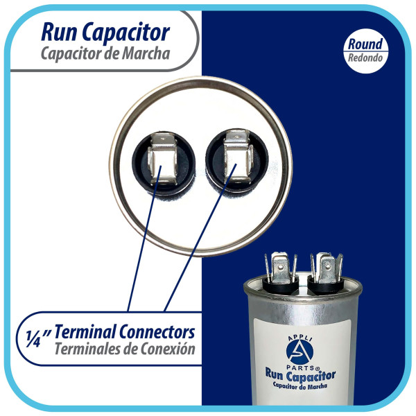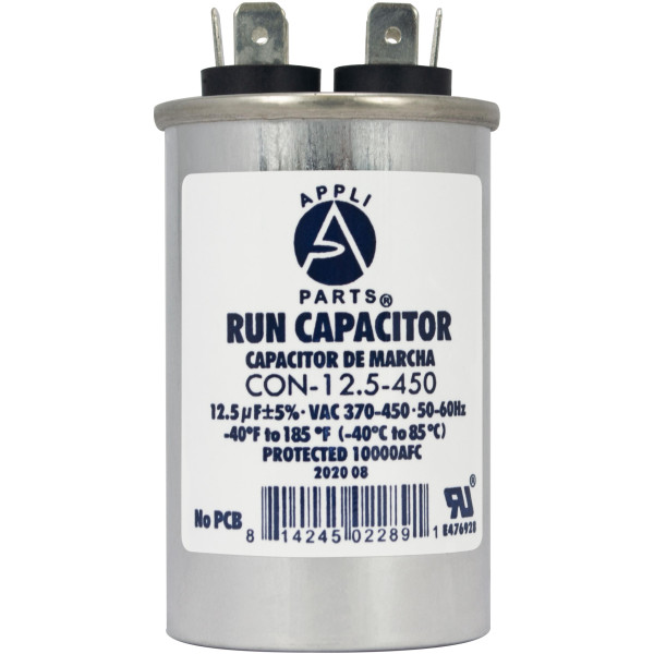 Appli Parts Condensador Capacitor de Marcha 12.5 Mfd uF (microfaradios) 370VAC o 450VAC CBB65 Universal Aire acondicionado y otras aplicaciones Redondo UL E476928 7.5cm Alto 3.7cm Ancho CON-4-450
