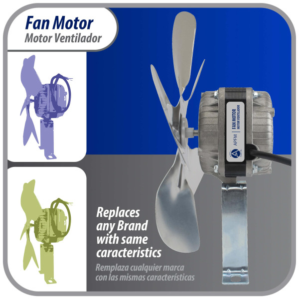 Appli Parts APFM-101E Motor Ventilador 10W Condensador y Evaporador 115V 60Hz 0.65A, Incluye Aspa de Aluminio de 23cm y Base de Montaje, Repuesto Universal para Equipos de Refrigeracion Comercial